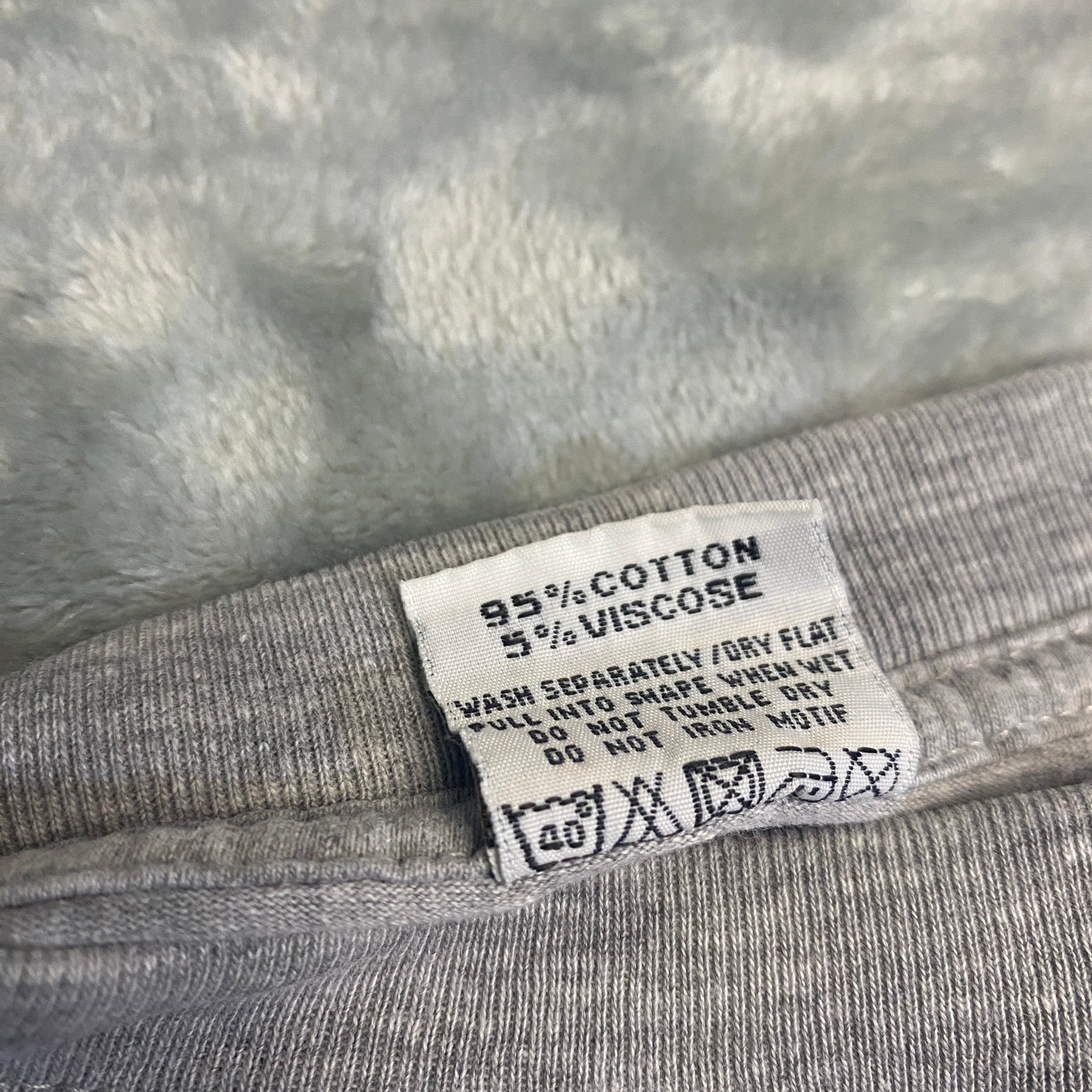 Tejido algodón-viscose suave y ligero (95% algodón 5% viscose, tacto plush con algo de caída, transpirable pero con peso medio para uso diario o layering), lavado desgastado con textura ligeramente arrugada y sutiles signos de uso que suman carácter raw premium.