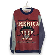 Sudadera Jumper America Authentic rare y bold – pieza limited edition 90s aesthetic con vibe early Y2K patriotic que grita Millennium Fashion y McBling energy. Muy cotizada por su print diamante USA icónico, mangas estrellas all-over, fit oversized auténtico y autenticidad vintage sportswear. ¡Solo una disponible en ERA90!