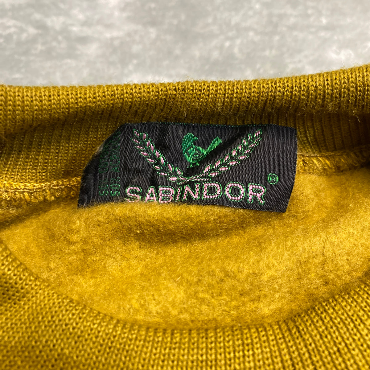 - Etiqueta interior: "SABINDOR® – COTONE ACRILICO" con bordado verde y rosa (detalle premium de la marca italiana 90s, producción típica blend cozy)
