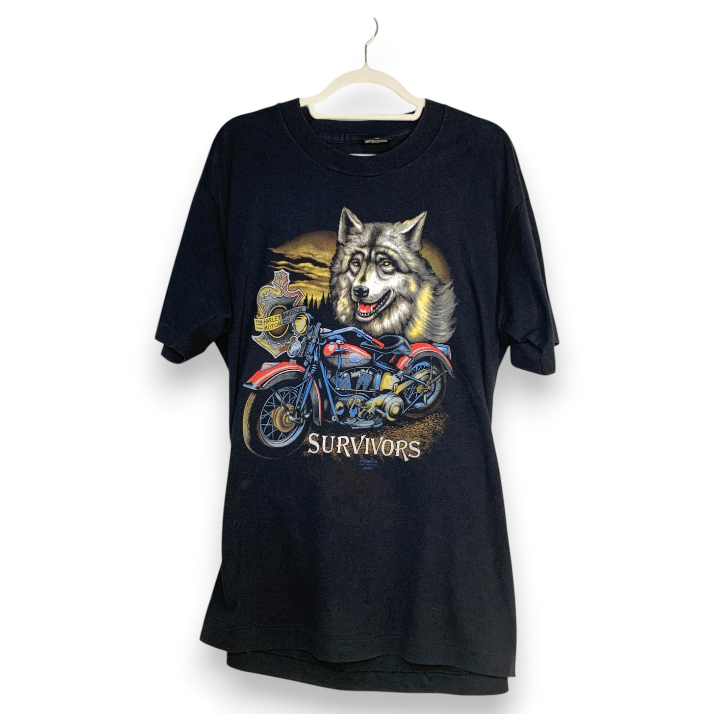 CAMISETA HARLEY-DAVIDSON "SURVIVORS" WOLF & MOTORCYCLE 1991