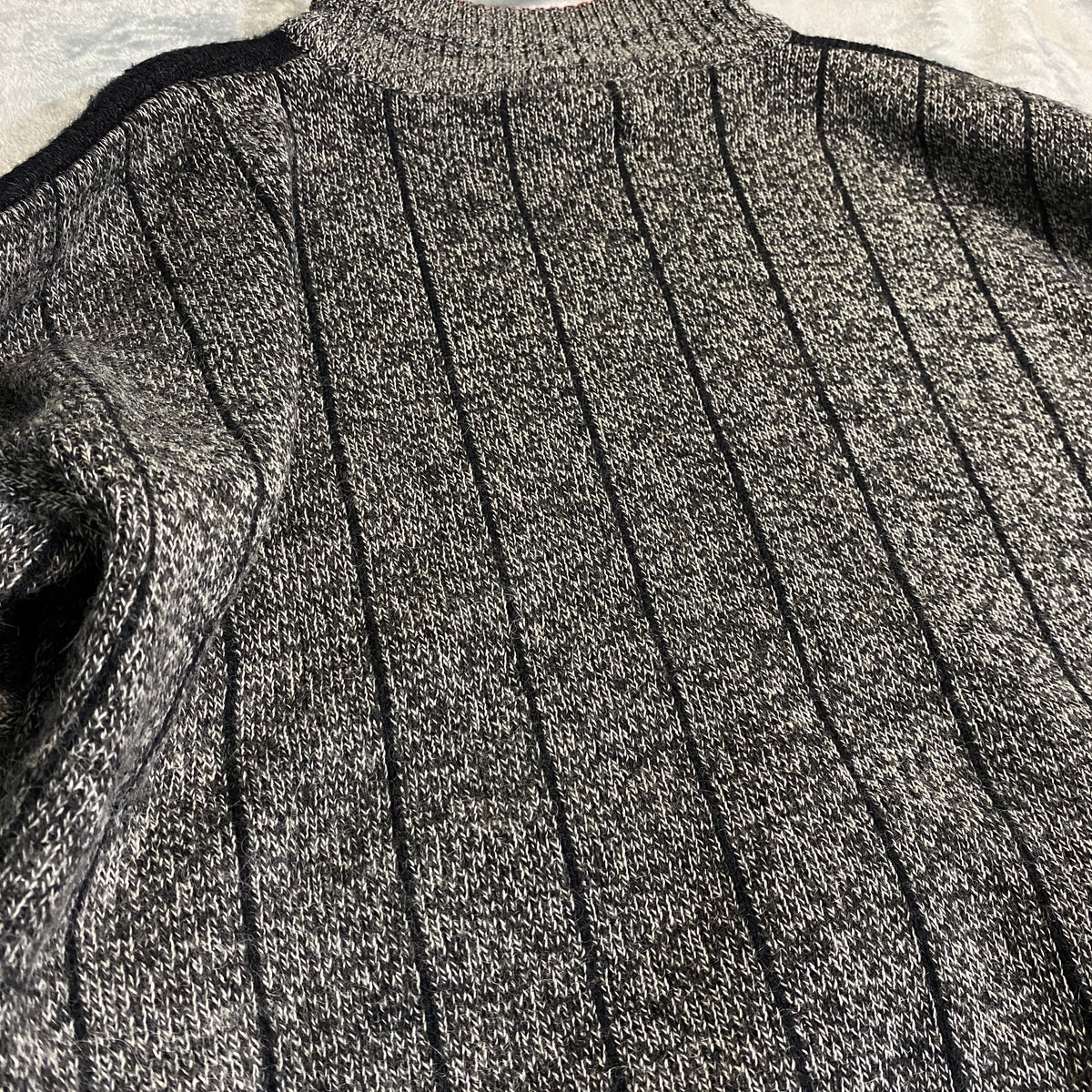 Aviso: Este producto es vintage y no puede estar en sus condiciones 100% nuevas. Tiene signos de uso visibles (pilling natural en textura bouclé, manchas orgánicas sutiles, desgaste en costuras y patina). Revisado y en estado usable (tejido intacto, sin roturas graves). Perfecto para quien busca autenticidad raw o para layering casual.